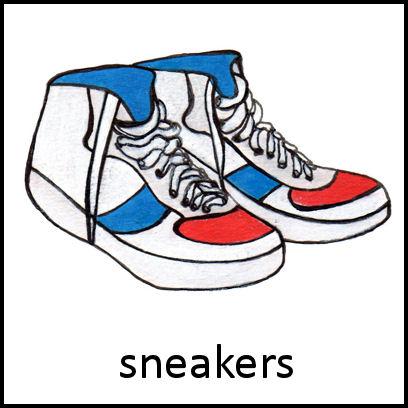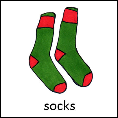 Clothing that is worn on the foot, or feet (plural) such as socks and shoes.