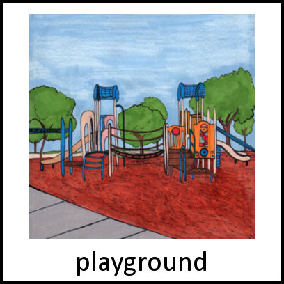 Areas and places that can be found outdoors, such as park or playgrounds.